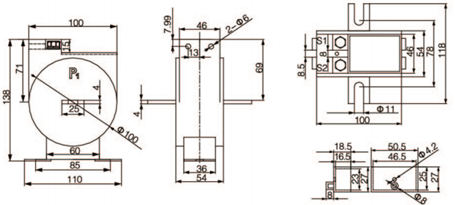 技術要求:額定電流比150A/5A;準確級1級;額定負荷2.5VA;穿心匝數1匝。