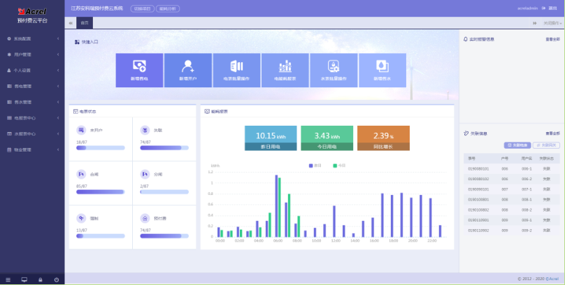 對于分布不同省、地市或同地市不同區(qū)域的連鎖商業(yè)、集團、百貨、門店、物業(yè)、院校等業(yè)務分散,要求集中管理、線上支付,低額提醒、欠費告警。但常規(guī)的本地插卡付費、本地預付費并不能完全滿足客戶管理需求,預付費云平臺應運而生。AcrelCloud-3200水電預付費云平臺無縫集成商業(yè)、物業(yè)公司、集團企業(yè)、院校等分散布置的安科瑞DDSY/ADF系列電子式預付費電能表、閥控智能水表等,提供微信、支付寶、銀聯(lián)等可選的在線支付方式,大大方便了用戶充值、圈存,提供預警和充值、退費、電能消耗等記錄查詢,方便用戶和管理方的數(shù)據(jù)統(tǒng)計和財務分析,提供先交費后使用的管控機制,大大降低了管理部門的收費成本。應用場所: